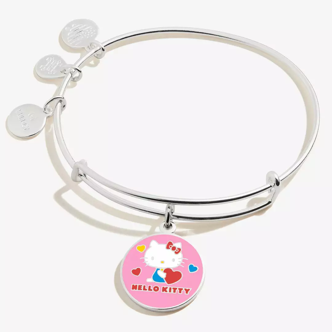 Hello Kitty is an icon of kindness and an inspiration to us all! This expandable wire bangle has Hello Kitty on a pink enamel charm surrounded with hearts.
