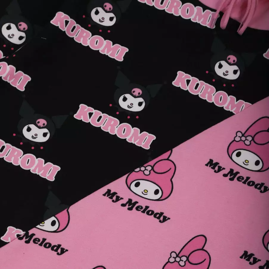 Are you team My Melody or Kuromi? Root for both of your favorite Sanrio characters with this diagonal split Hoodie featuring a repeat pattern of both My Melody and Kuromi.