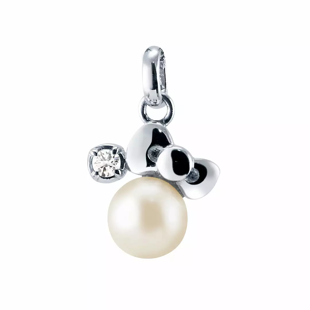 Too sweet to resist! This necklace is made of white steel and features a Hello Kitty bow charm and water pearl and CZ crystals. You can dress it up or keep it cute and casual. From the 2Sweet x Hello Kitty collection!