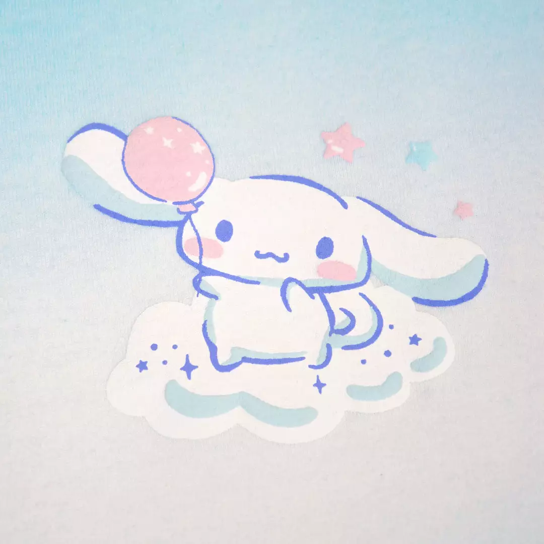 This Cinnamoroll JapanLA Spirit Jersey features a light blue and white cloud tie dye unisex Spirit Jersey top with puff printing of Cinnamoroll on the front. On the upper back, Cinnamoroll’s name is printed in periwinkle super puff! The lower back has a large graphic of Cinnamoroll sitting of a fluffy cloud holding a star. The JapanLA Logo is printed on the left sleeve.