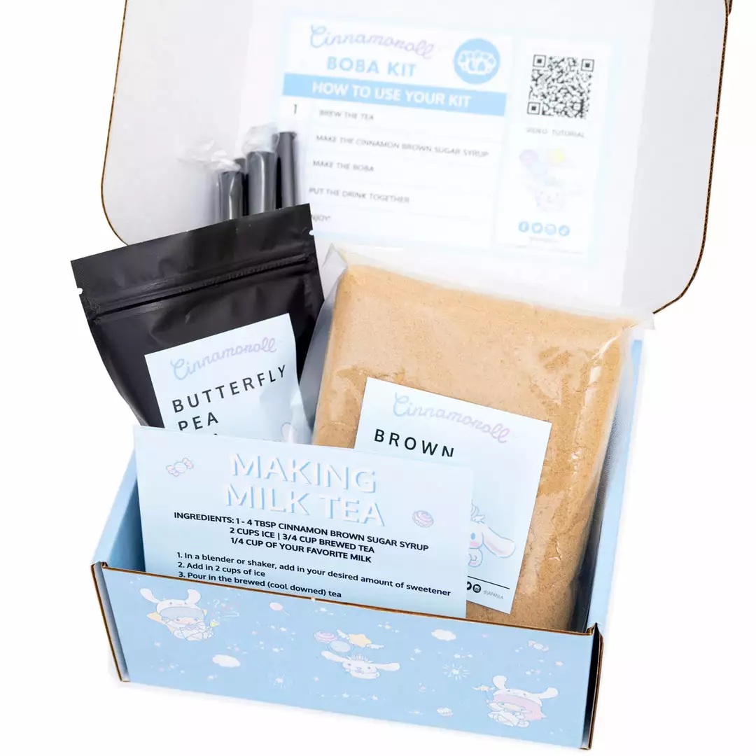 This JapanLA bundle includes a boxed boba kit and a reusable Cinnamoroll tumbler to create your own Butterfly Pea Milk Tea with boba right at home! Easy to make and delicious to drink, the set features Cinnamoroll’s 20th Anniversary artwork. With enough for four servings, you can invite your friends over for a super cute and super sweet bev~