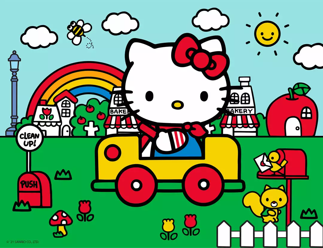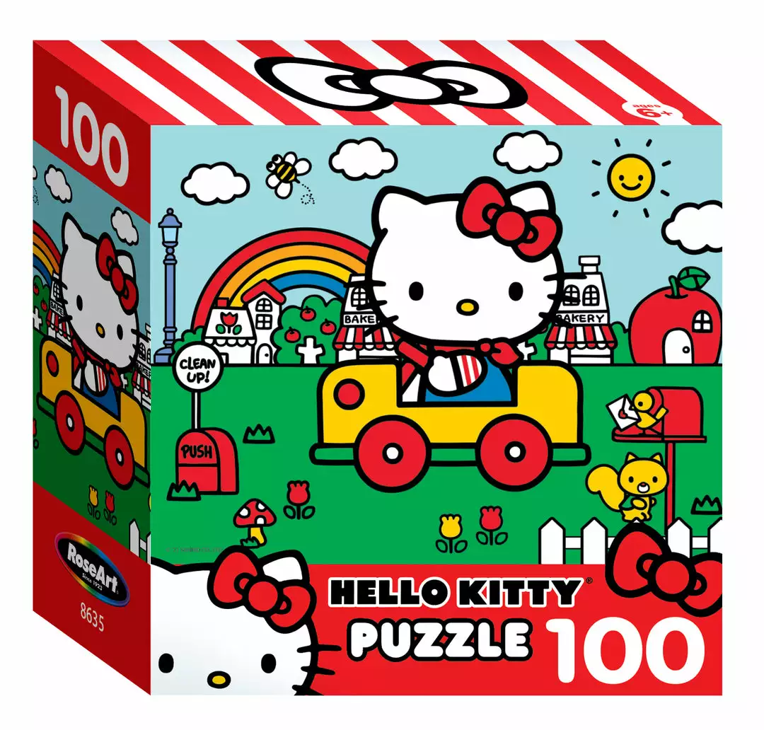 So cute! This 100-piece jigsaw puzzle features Hello Kitty driving an adorable yellow car through town. Full of rich colors and fun details, this puzzle is perfect for a leisurely weekend indoors.