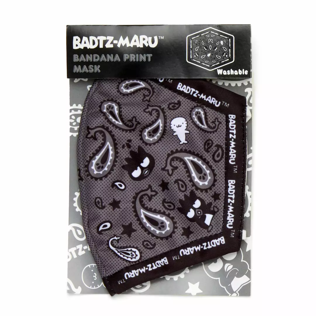 Help keep yourself and others safe with the reusable Badtz-maru Paisley Face Mask. It has two elastic loops and can be washed for repeated use. It also features his friend, Hana-maru, the white seal!