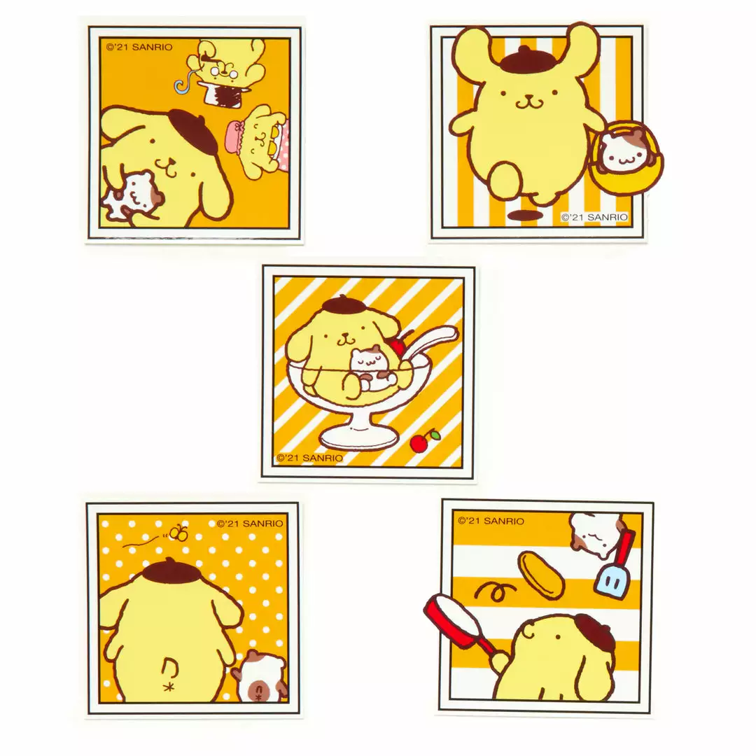 Inspired by Polaroid photos, these Photo Big Sticker packs are for true Pompompurin fans. With a cheerful yellow and white palette, he’s the star in all these shots ranging from making pancakes to a family portrait with his parents.