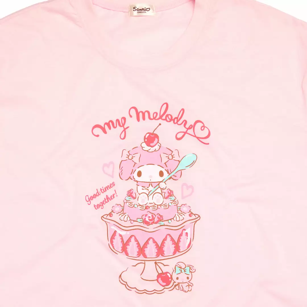 Enjoy a sweet trifle dessert with My Melody! It has an overall boxy fit with a slightly shorter cut in a dreamy shade of blush pink. Wear it with your favorite denim for a cute and simple look!