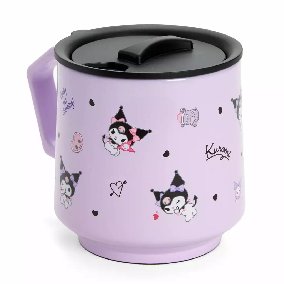 Let Kuromi keep you company during your daily commute to work or school! This Stainless Steel Mug keeps hot drinks hot and cold drinks cold. The lightweight design and angled handle also make it convenient to carry!