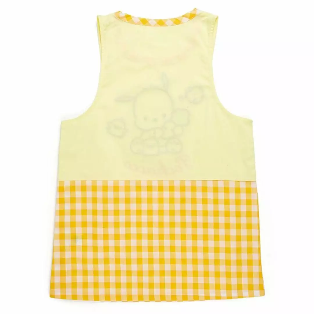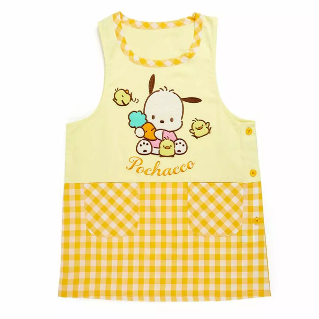 Get fired up in the kitchen with this adorable yellow gingham apron featuring Pochacco! The center artwork sees him with the Pi-chans holding a sweet carrot. Slip it on over your normal clothes to prevent any splash or spills!