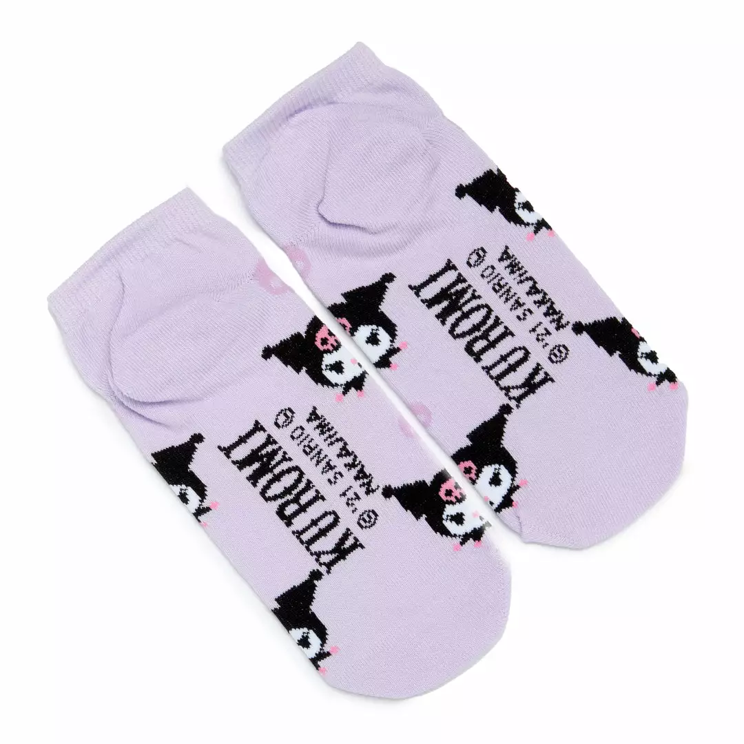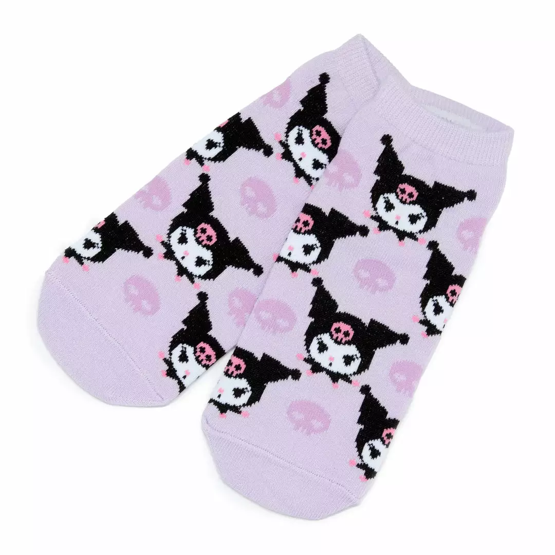 Keep your toesies warm with these graphic low-cut socks featuring Kuromi! The pattern has Kuromi with a skull on a coordinating lavender background.