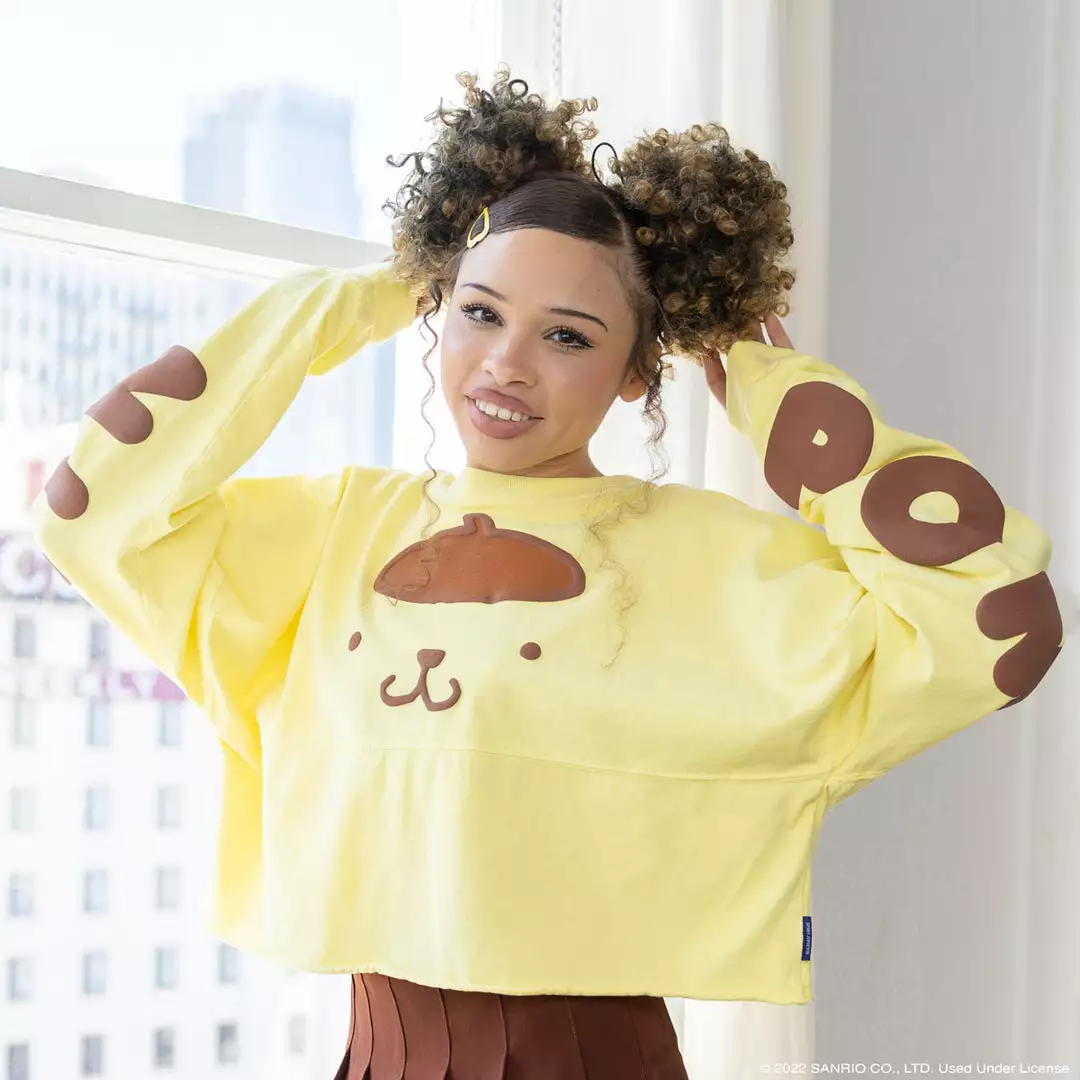 This Pompompurin JapanLA Cropped Spirit Jersey is the perfect cropped fit! It features Pompompurin’s face and beret printed in puff ink on the front. On the upper back, Pompompurin’s name is printed across the shoulders using brown super puff. The JapanLA logo is printed on the sleeve. We can’t forget his charm point on the lower back!