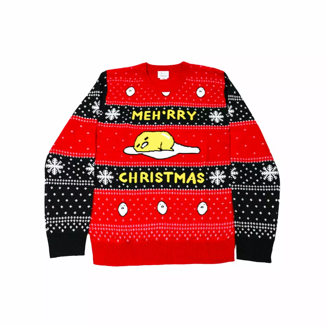 Top off your holiday look with the cutest ugly sweater featuring Gudetama surrounded by fair isle patterns and detail!